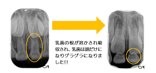 3.乳歯の根が溶けてなくなると、乳歯が抜け落ちて永久歯に生えかわります。