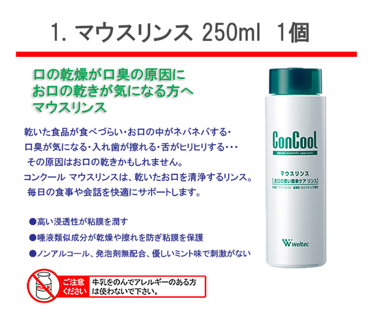 乾いた食品が食べづらい・お口の中がネバネバする・口臭が気になる・入れ歯が擦れる・舌がヒリヒリする。その原因は口の乾きかもしれません。コンクールマウスリンスは、乾いたお口を清浄するリンスです。毎日の食事や会話を快適にサポートします。