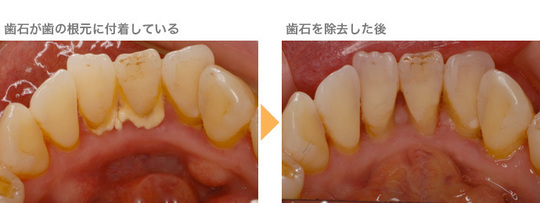 歯石を取ることで歯の根の表面が露出すると、外部からの刺激が歯の中の神経に伝わりやすくなるために歯がしみやすくなります。ほとんどは一時的なことが多く自然に治ります。歯周病の患者さんの中には腫れた歯ぐきの下の硬い歯石を除去することもあります。治療の効果で歯石がなくなり歯ぐきの腫れが治まると、歯の根が大きく露出するので歯がしみやすくなります。そして、この症状がしばらく続くことがあります。