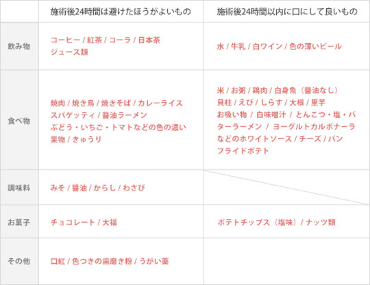 白い食べ物や色の薄い食べ物は着色の心配が低い言われています。