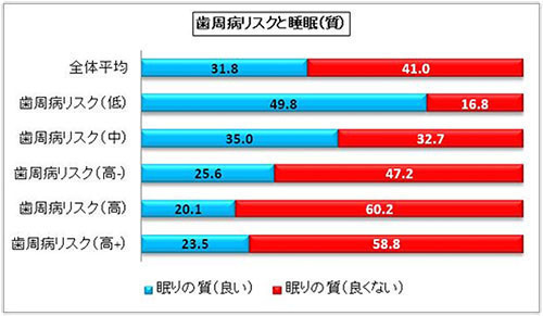 睡眠不足が続くと歯周病の発症リスクが高くなると言われています。睡眠は日中に活動して傷ついた組織を回復する為の時間です。よって、回復できない状態が続くと疲労が蓄積して免疫力の低下につながります。免疫力が低下すると免疫で抑制されていた歯周病菌が活性化するため歯周病が進行します。