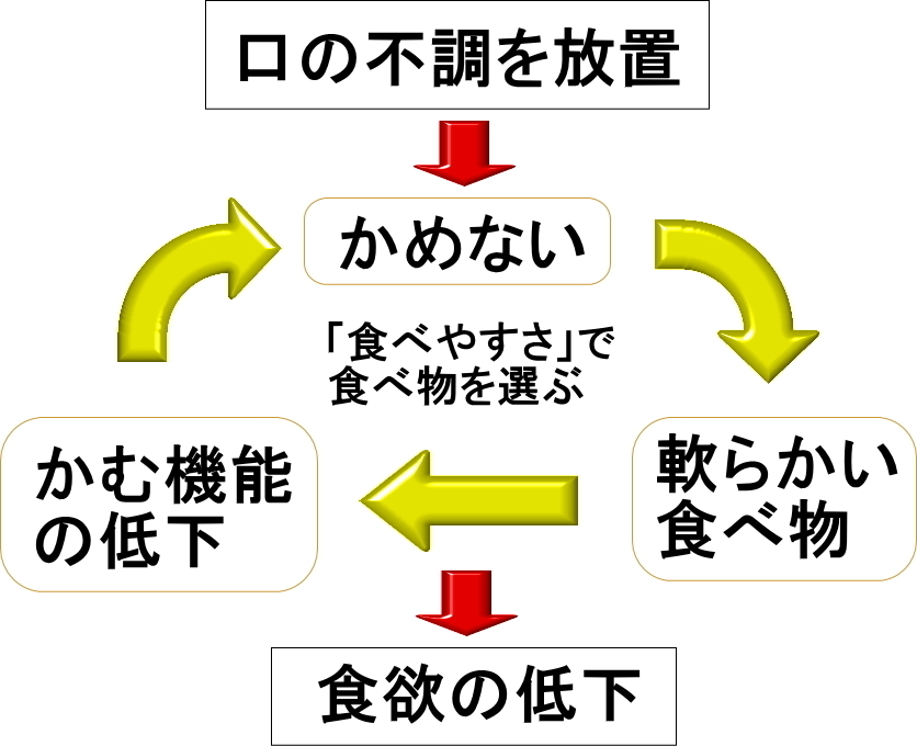 高齢者の方が元気に日常生活を送る基本となるのが毎日の食生活です。食生活を支えるのは口腔の咀嚼機能であり、これが低下する状態(オーラルフレイル)を作る原因は、歯科の2大疾患である虫歯と歯周病です。
