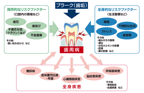 ・口の細菌が血流に乗って全身に悪影響を及ぼす