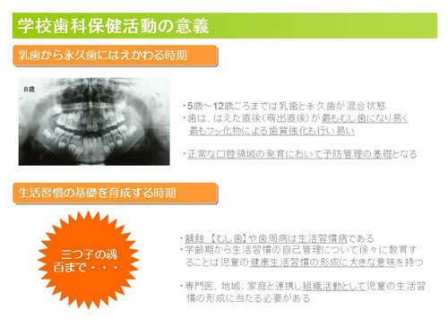 虫歯や歯周病は生活習慣病です。学齢期から生活習慣の自己管理について徐々に教育することは、子供の健康生活習慣の形成に大きく役立ちます。