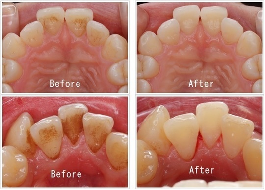 着色(ステイン)やヤニを除去し、光沢のある歯の表面にします。