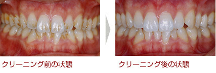 歯のクリーニングとは歯垢・歯石・着色汚れなどを除去して、口の中の健康を維持するための歯科治療です。通常の歯磨きでは取り除くことのできない強固な歯の付着物(ヤニや茶しぶ)を除去することが可能です。