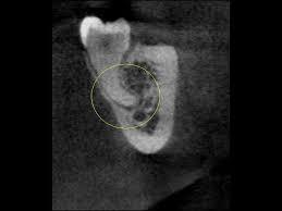 多くの歯科医院にあるデンタルレントゲンは、歯や顎の骨の状態を二次元的にのみ撮影できます。CTはそれに対して、三次元的な撮影が可能です。当院では立体的に診断できるCTを用いて歯の位置を正確に分析します。歯の根の先端と神経の位置関係をきちんと調べてから抜歯を行うので、写真のような歯の根と神経が近接している症例でも安心して治療を受けることが可能です。