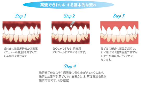 ③ フェノール剤塗布(薬を歯ぐきの黒ずんでいる部分に塗ります)