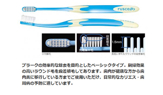 歯周病で歯ぐきに痛みがあり、出血の自覚症状のある人に向けて、毛先をドーム型にカットした歯周病専用の歯ブラシです。ブラッシング時に歯ぐきに毛があたりにくく、痛みの強い部分を傷つけることなく磨くことができます。