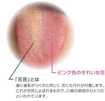 口臭の主な成分の一つである硫化水素は舌苔に関連していると言われています。ちなみに口臭のメチルメルカプタンという成分は歯周病と関連しています。硫化水素は食べカスや上皮カスが細菌によって腐敗されることによって発生し、このような環境が舌苔にあるため口臭の主な原因とされます。ただし、舌苔は必ずしも病的なものではありません。口臭も生理的な範囲であることが多いです。舌苔自体を治療する必要はないですが、口臭の原因として考えられる場合は舌ブラシで舌を磨く必要があります。