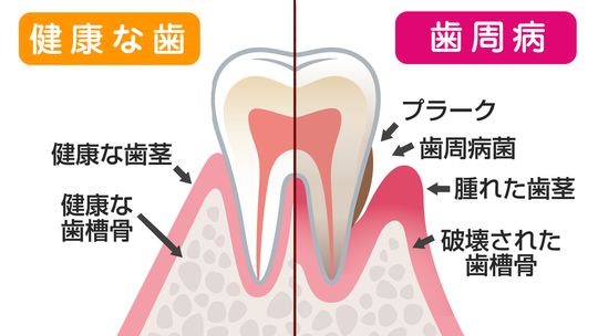歯周ポケット内のプラーク、免疫力の低下、慢性歯周炎の悪化(炎症性浸出物の停滞)、歯冠部や歯肉縁下の食片圧入が挙げられます。