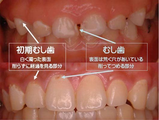 歯の表面のエナメル質が溶け始めてきている状態です。虫歯の初期症状です。