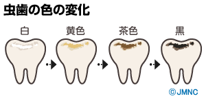 虫歯の色のイメージは「黒」だと思っていませんか。虫歯というのは虫歯の進み具合や深さの程度によって色が変わってきます。