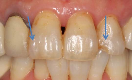 ひびが入るとその部分に虫歯の原因となるプラークが付着しやすくなります。ひびから虫歯になり、虫歯が広がってくると割れたり欠けたりすることも多いです。