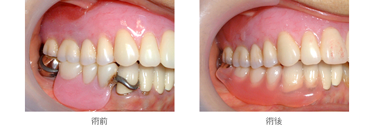 『ノンクラスプデンチャー』は、金属製の金具の代わりにプラスチック製の義歯床で支えます。そのために金属アレルギーの方には安心です。また、口を開けてもが金具が見えないので見た目も良好です。さらに、今までの入れ歯とは異なり、破折に強い素材を使用して歯肉の色調とも調和します。