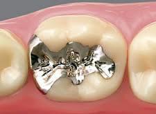 銀歯の詰め物で主に金銀パラジウム合金が使用されます。基本的に見た目はよくありません。