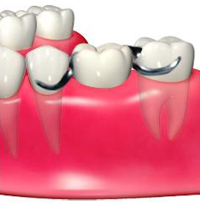 歯のなくなった部分がどこでも、歯を削らないで治療可能な方法です。しかし、入れ歯は、違和感がある、取り外す手間がかかる、金属のバネの見た目が悪いなどのデメリットがあるために選ばない方も多いです。自費の部分入れ歯では、クラスプのないタイプも可能です。