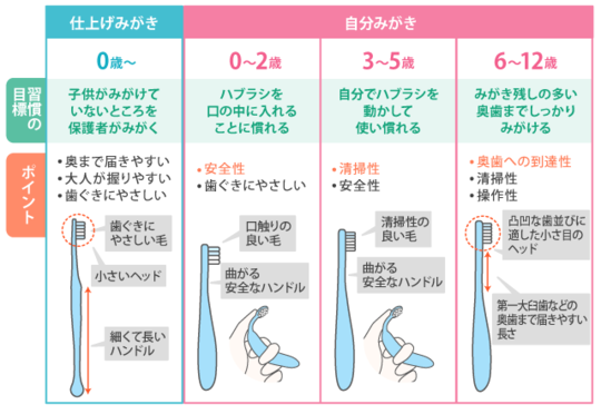 Point1:歯ブラシのハンドルは、子どもが握りやすい「まっすぐで太め」のもの