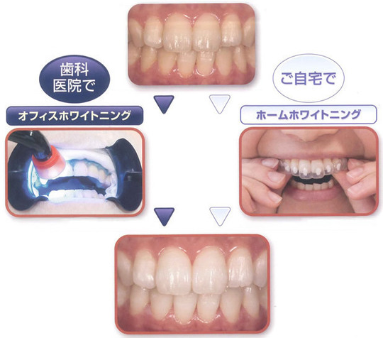 患者さまご自身が自宅で行うホワイトニングのことです。専用のマウスピースを作り、そこに薬剤を入れて使用します。難しくはありませんので安心して下さい。仕事などの都合で定期的に通院することが難しい方におすすめです。