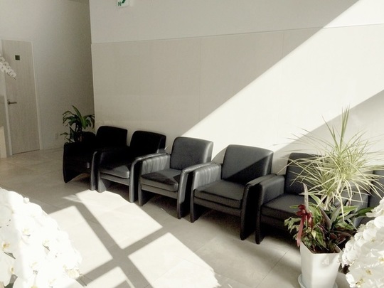 天井の高さ5メートルの広々空間で開放感のあるクリニックです。プライバシーに配慮し、半個室タイプとなっています。また、予防専用メインテナンスルームも完備しています。